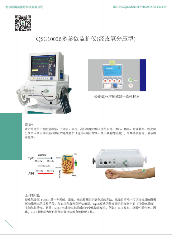 北京秋滿實 QSG1000B多參數(shù)監(jiān)護儀(經(jīng)皮氧分壓型)